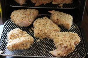 - Place on the air fryer oven top shelf and cook for 40 minutes at 180c/360f. While your breaded chicken is cooking mix your ranch ingredients together.