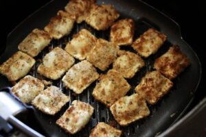 - Place each ravioli piece into the air fryer grill pan. Cook in the air fryer at 200c/400f for 3 minutes.