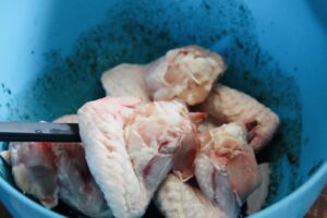 - Place the chicken wings (while still in the bowl) in the fridge for an hour to thoroughly marinade.