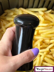 - Shake the frozen fries, spray the tops with olive oil and cook for a further 8 minutes at 200c/400f or until crispy to your liking.