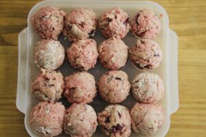 - Using a meatball press create your meatballs. If needed add some oat flour to combine them together.