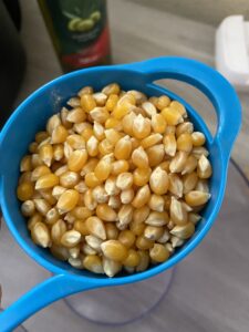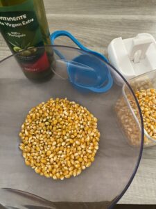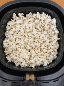 Disclaimer – we originally did this for a You Tube Video to show you why you shouldn’t do popcorn. I still dont agree in doing it with the air fryer, but love it in the pressure cooker. I’m keep this recipe on and the video so you can see for yourself.