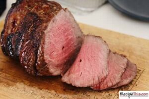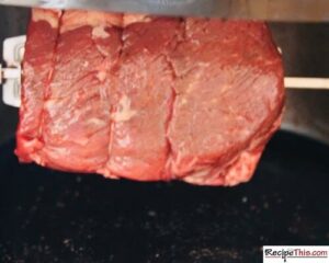 This is another favourite in our series of rotisserie meats in the air fryer oven. Air Fryer roast beef is attached to the rotisserie skewers and then cooked to your prefer doneness.