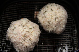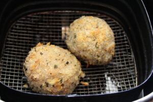 - Coat in breadcrumbs and place in the air fryer basket. Cook for 10 minutes at 180c/360f. Serve.