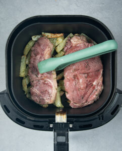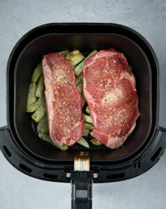 We used sirloin steak, but it will work well with any air fryer steak and you can use a dual air fryer, air fryer basket or an air fryer oven.