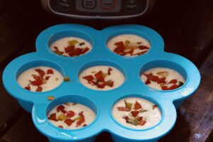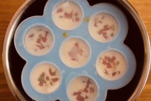 - Remove the egg bite moulds after the additional 5 minutes natural pressure, take the lids off and place them in the freezer for 5 minutes.
