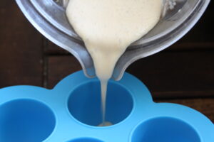 - Place the plain egg bite ingredients into a blender and blend until it resembles a smooth omelette batter. Pour the batter into egg bite moulds until they are 75% full. If adding an extra topping sprinkle it on top now. Secure the lid on your egg bite mould.