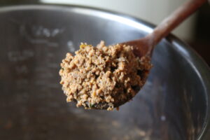- Drain the water from the bottom, add the olive oil and place it on sauté. Add the mince once it starts to sizzle and using a wooden spoon break down the taco meat until its fully shredded. Season well and mix a little more. If it is too dry stir in a little coconut milk.