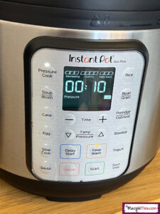 - Place the lid on the instant pot pressure cooker, set the valve to sealing and pressure cook for 10 minutes followed by a quick pressure release.