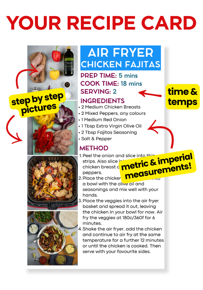 During the 5-day email mini course we ran through the air fryer basics in email format. But we covered quite a few different recipes that you would each have to open and its hard work to organise, when viewing via your email inbox.